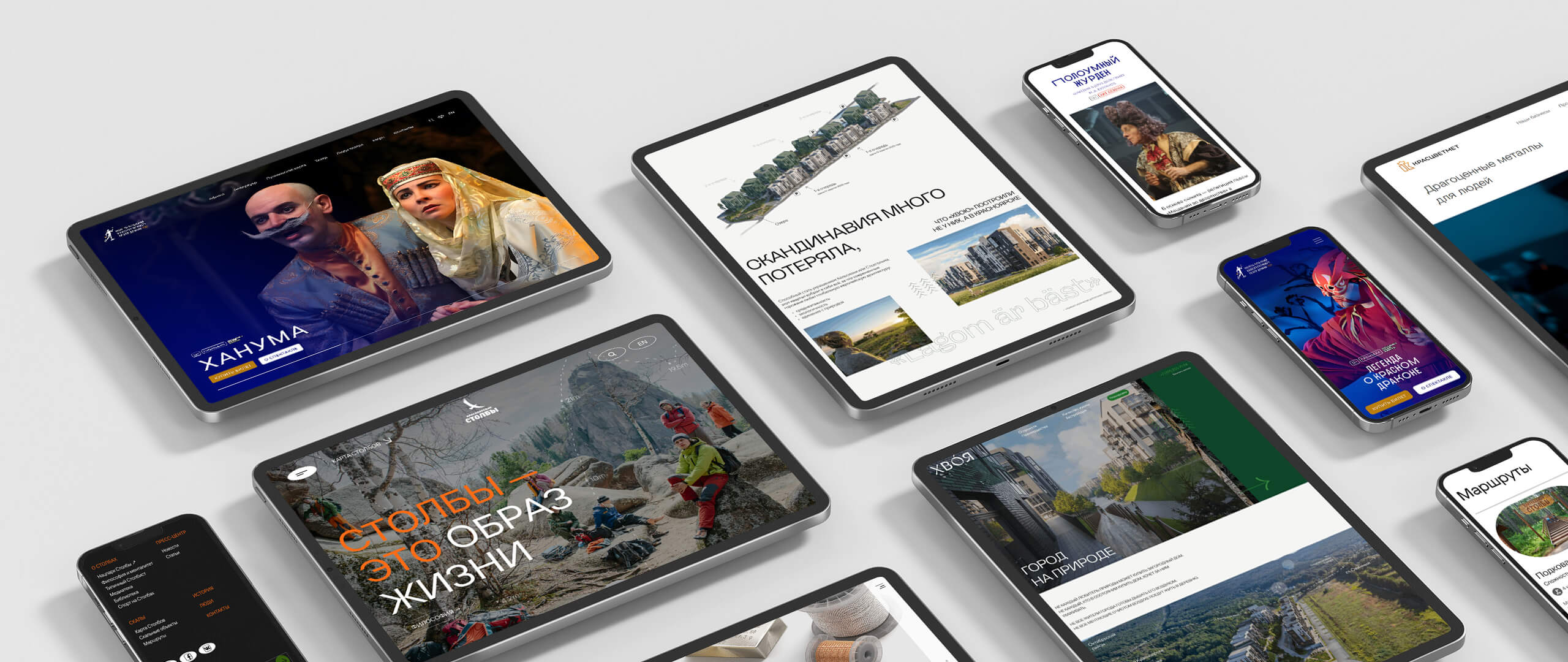 Разрабатываем основные/типовые страницы сайта, адаптив по ширине 1920, 1366, 1024 и 320 px, подготавливаем и передаем макеты на верстку.